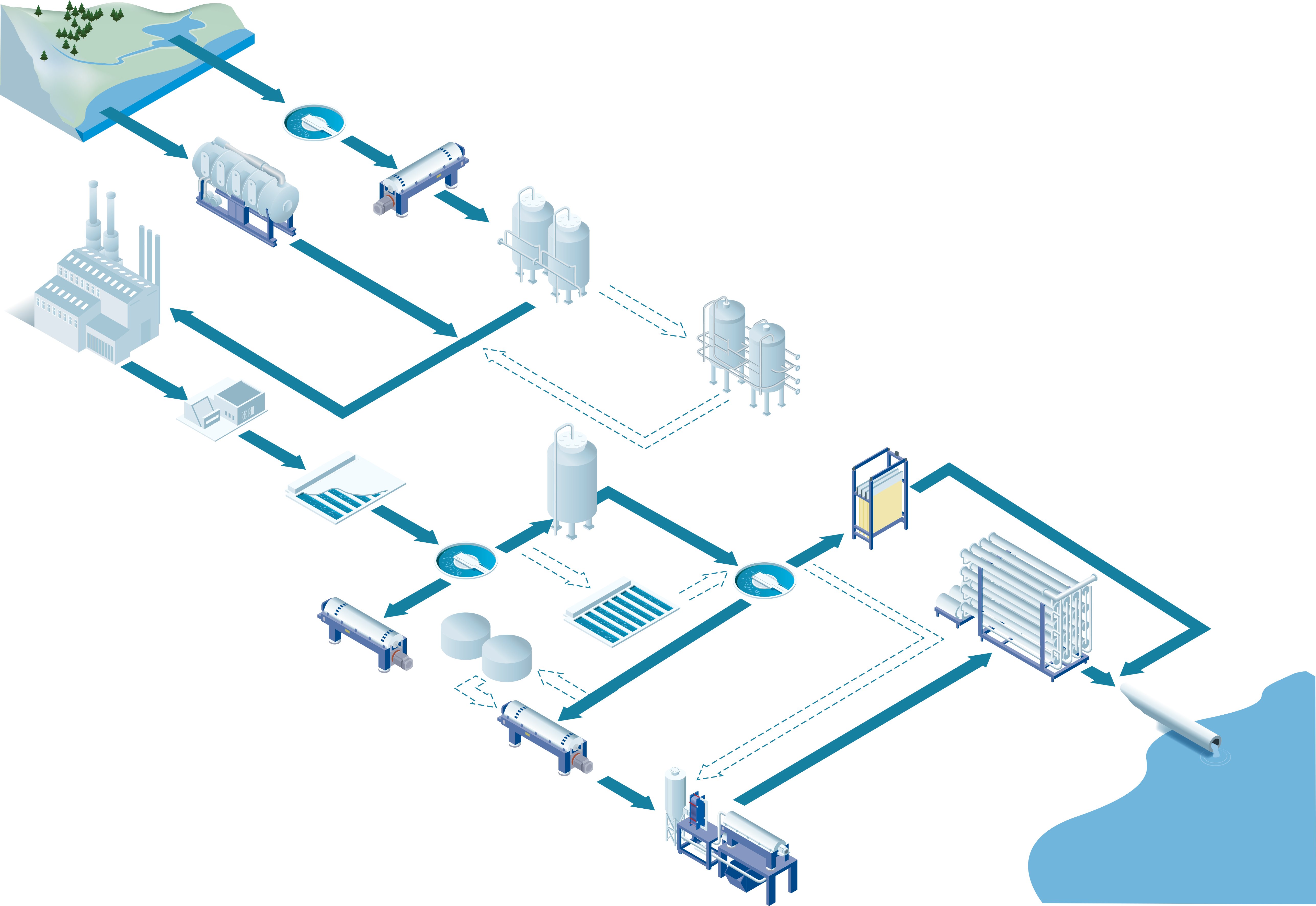 Soluciones avanzadas de separación, agua dulce y evaporación que cubren todo el proceso de tratamiento de aguas y residuos
